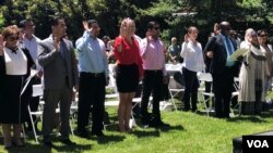 AQSh bayrog’ini sharaflash kunida 18 mamlakatdan 28 kishi fuqarolikni qabul qildi. Tadbir boshqa marosimlardan ancha farqli, Amerika bayrog’i va keyinchalik madhiya yaratilishiga turtki bo’lgan tarixiy binoda o’tdi.