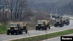 Slavyansk shahri referendum talab qilayotgan, Rossiyaga moyil qurollangan to’dalar nazoratida ekan, undan 40 kilometr narida yuzlab askarlar va vertolyotlarni ko’rish mumkin. Namoyishchilar kurashga tayyor ekanini aytadi.