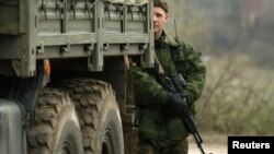 “Reyter” axborot agentligi Simferopol shahridagi harbiy bazaga Rossiyaga tegishli mashinalar kolonnasi kirib borgani haqida xabar tarqatdi. Guvohlarning so’zlariga ko’ra, zobitlarning kiyimida biror yozuv bo’lmasa-da, ular ruslar ekani ayon.